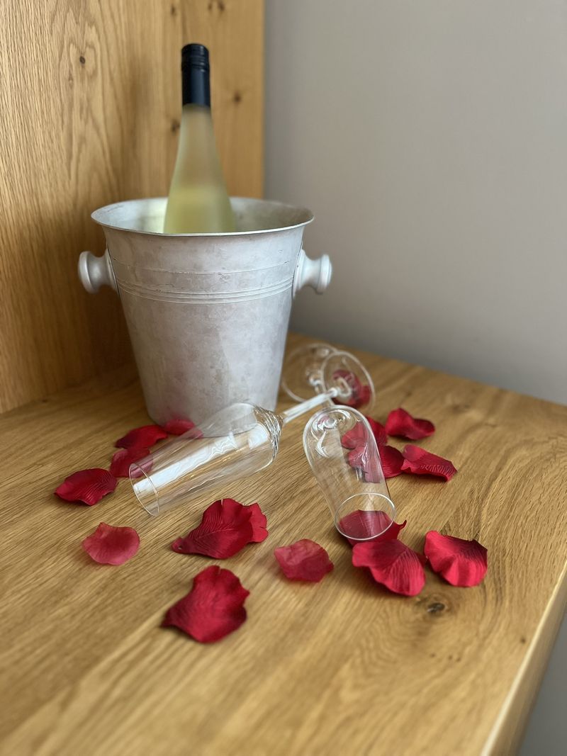 • Gekühlte Flasche Sekt auf dem Zimmer
